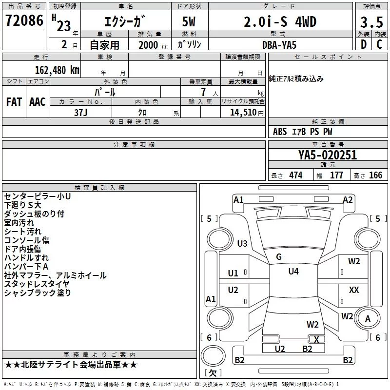 Subaru EXIGA с аукциона Японии TAA Chubu лот № 72086