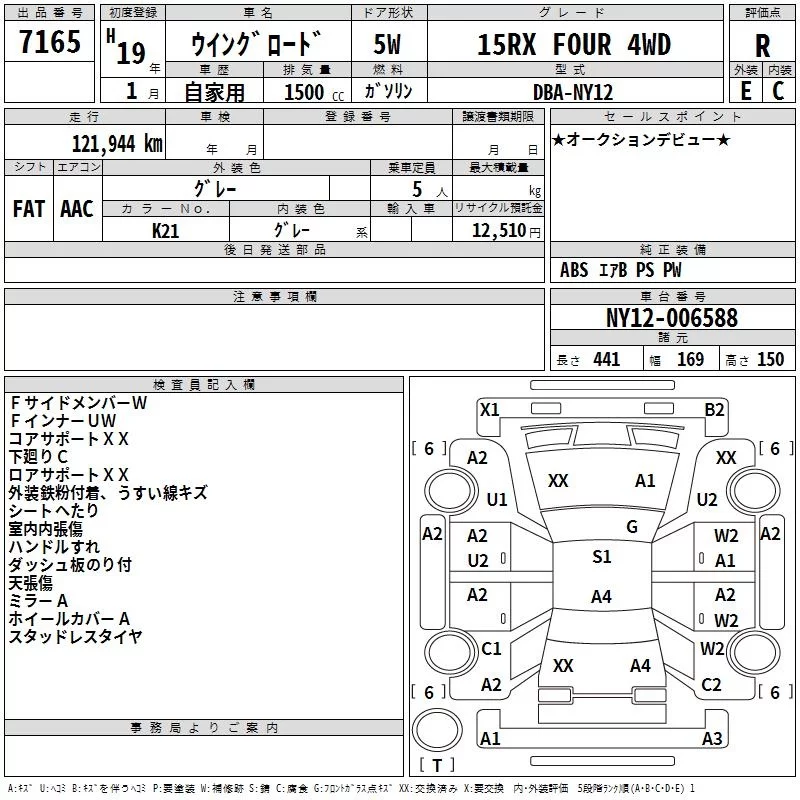 Nissan WINGROAD с аукциона Японии TAA Hokkaido лот № 7165