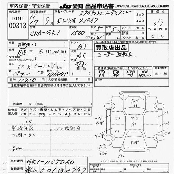 Honda SPIKE с аукциона Японии JU Aichi лот № 313