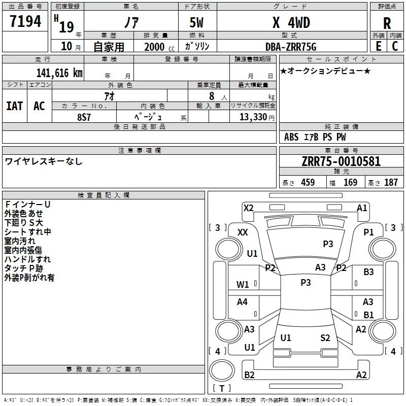 Toyota NOAH с аукциона Японии TAA Hokkaido лот № 7194