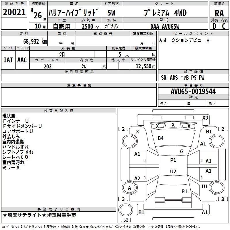 Toyota HARRIER с аукциона Японии TAA Kanto лот № 20021