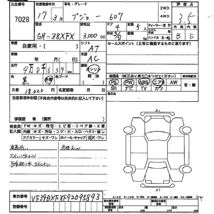 Peugeot 607 с аукциона Японии JU Hiroshima лот № 7028