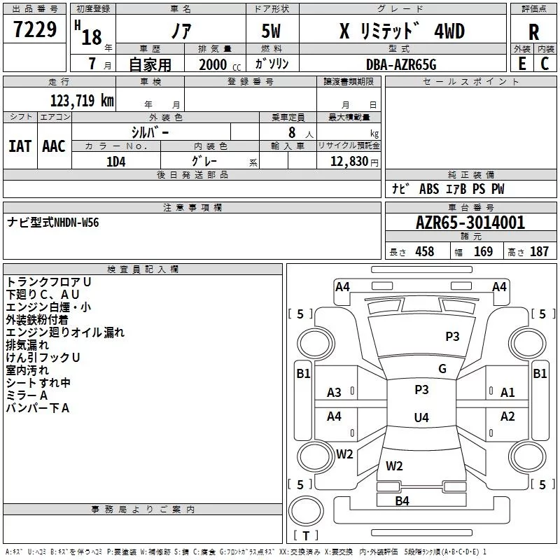 Toyota NOAH с аукциона Японии TAA Hokkaido лот № 7229