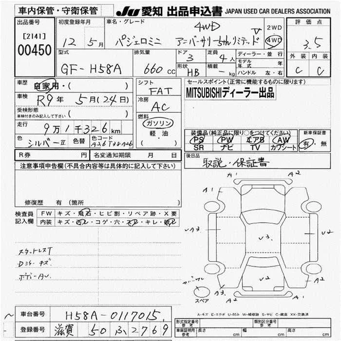 Mitsubishi PAJERO MINI с аукциона Японии JU Aichi лот № 450