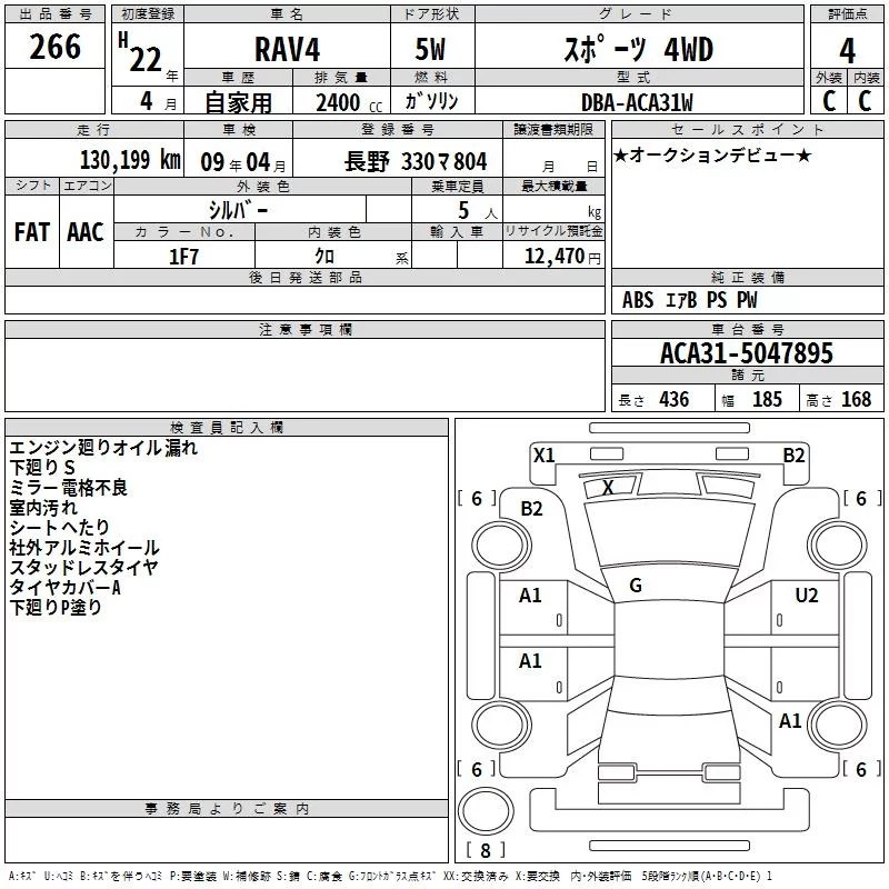 Toyota RAV4 с аукциона Японии TAA Chubu лот № 266