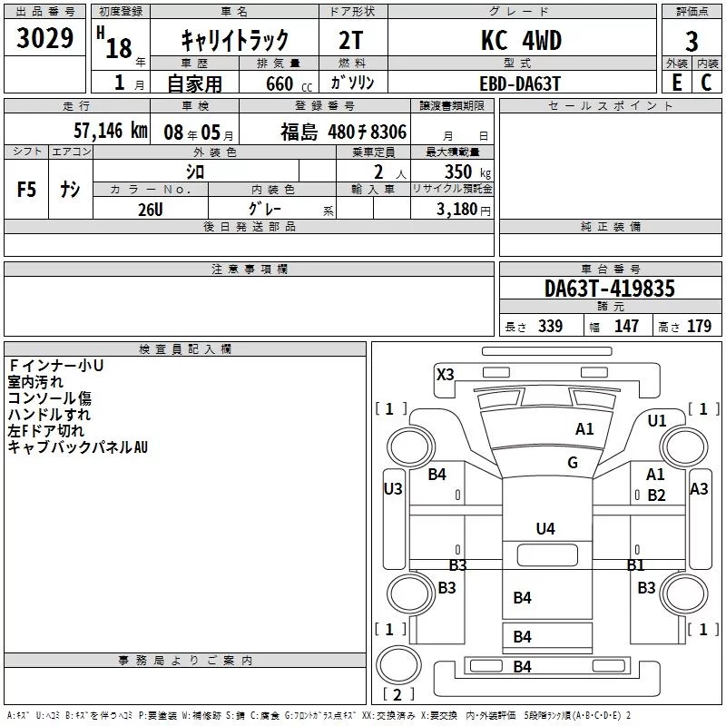 Suzuki CARRY TRUCK с аукциона Японии TAA Tohoku лот № 3029