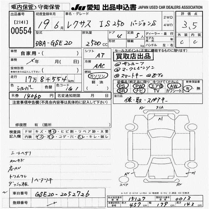 Lexus IS с аукциона Японии JU Aichi лот № 554