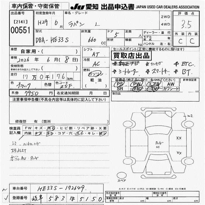 Suzuki ALTO LAPIN с аукциона Японии JU Aichi лот № 551