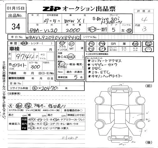 BMW X1 с аукциона Японии ZIP Osaka лот № 34