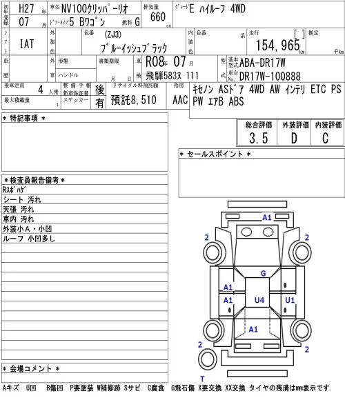 Nissan CLIPPER RIO с аукциона Японии NAA Nagoya лот № 4522