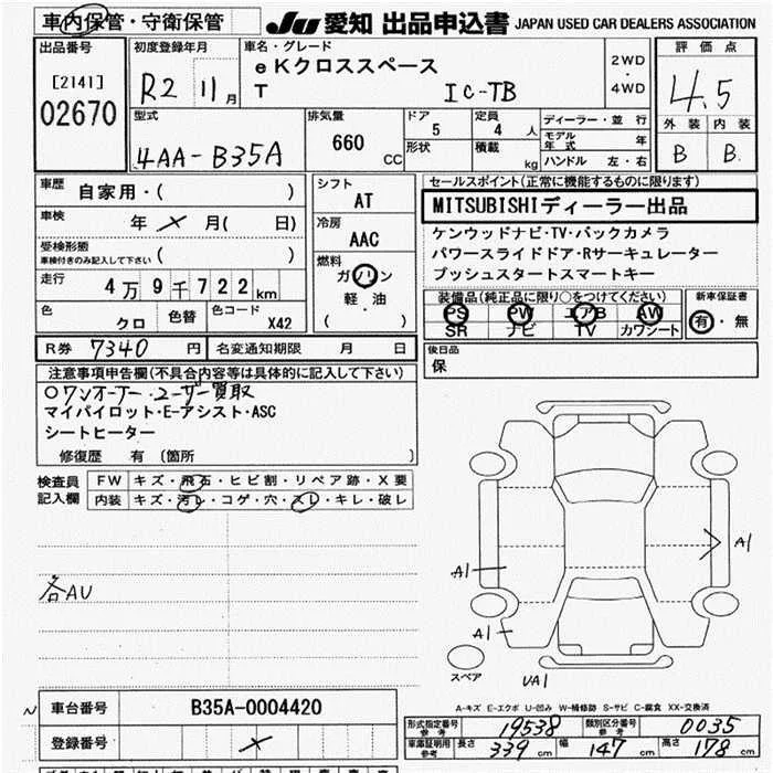 Mitsubishi EK X SPACE с аукциона Японии JU Aichi лот № 2670