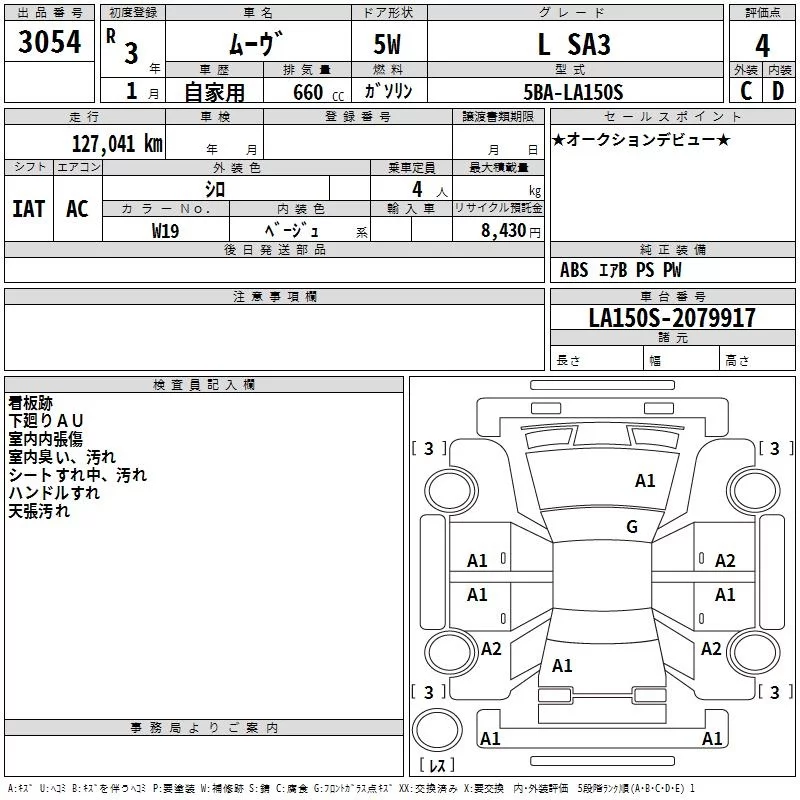Daihatsu MOVE с аукциона Японии TAA Tohoku лот № 3054