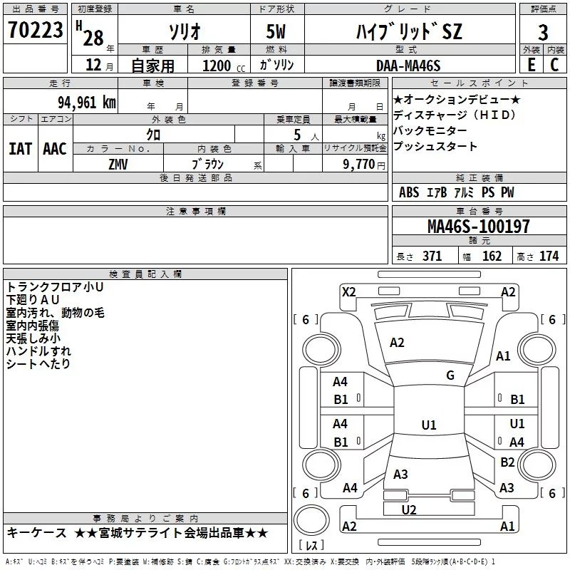 Suzuki SOLIO с аукциона Японии TAA Tohoku лот № 70223