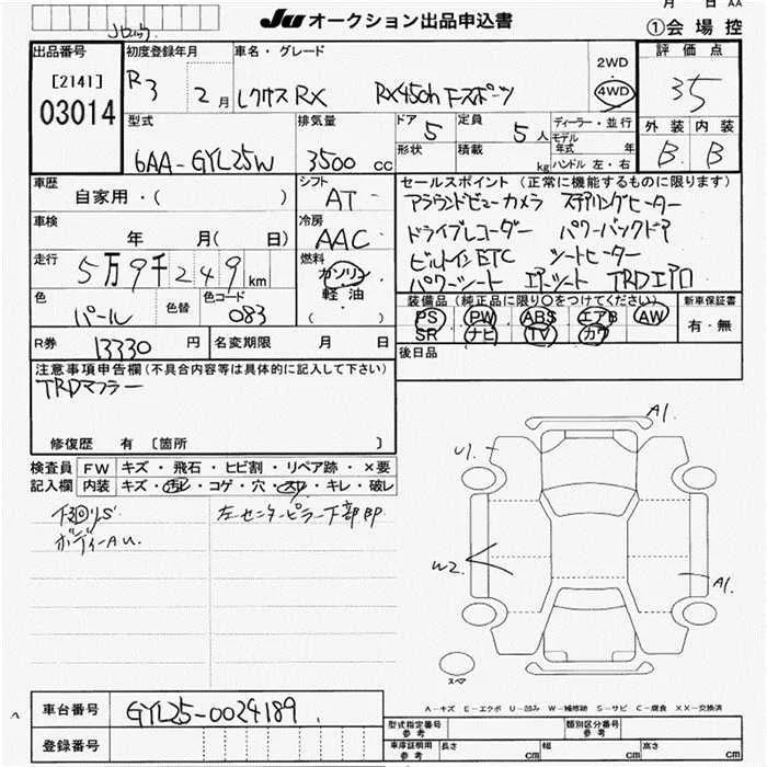 Lexus RX с аукциона Японии JU Aichi лот № 3014