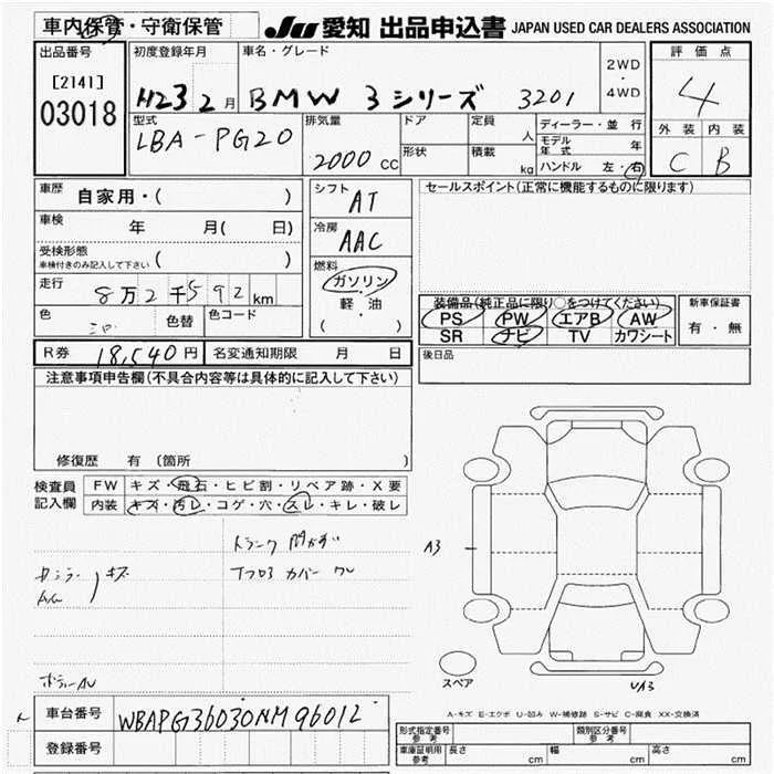 BMW 3-Series с аукциона Японии JU Aichi лот № 3018
