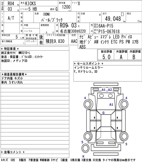 Nissan KICKS с аукциона Японии NAA Nagoya лот № 1001
