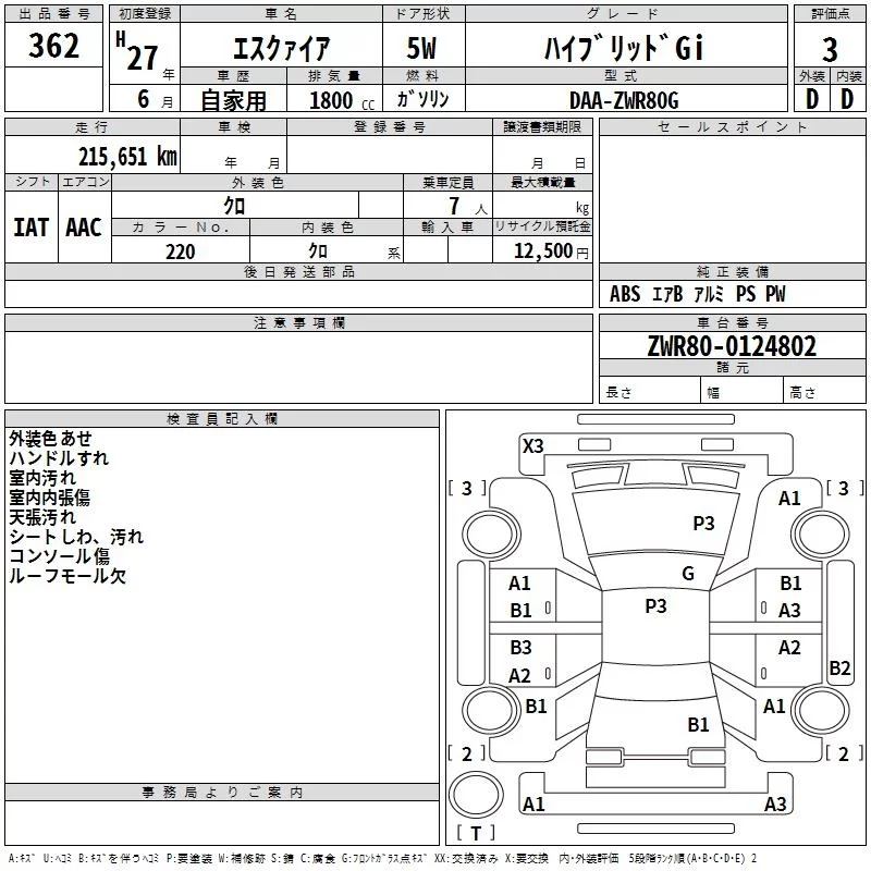 Toyota ESQUIRE с аукциона Японии TAA Chubu лот № 362