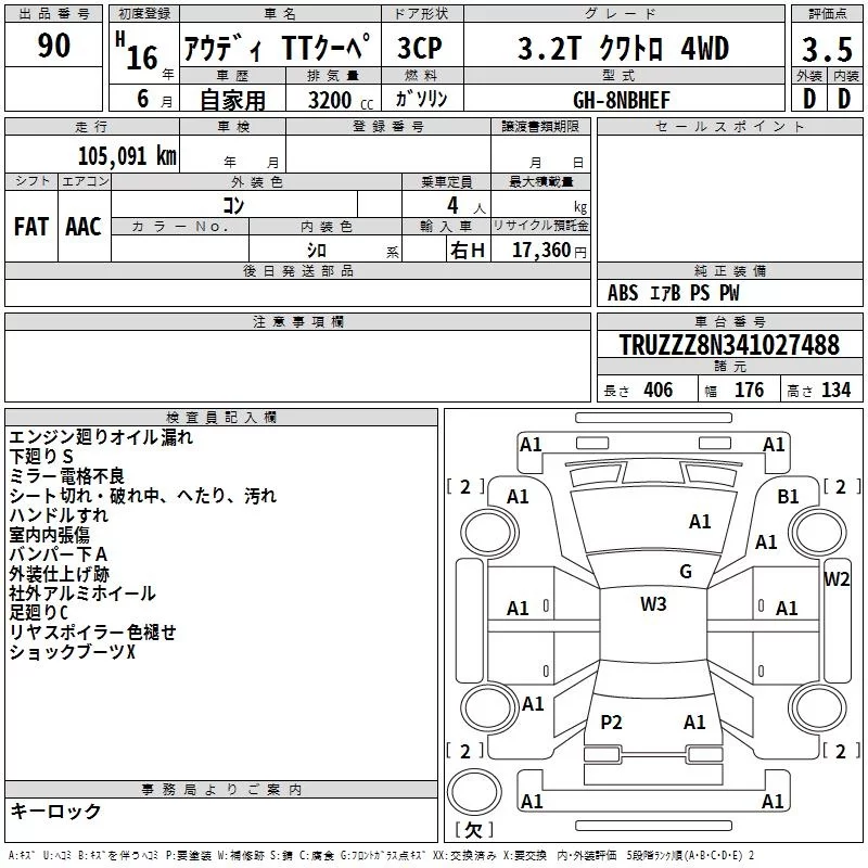 Audi TT с аукциона Японии TAA Tohoku лот № 90