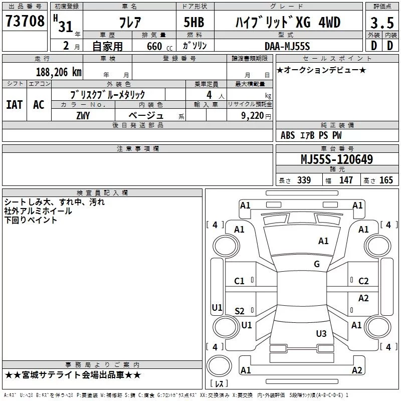 Mazda FLAIR с аукциона Японии TAA Tohoku лот № 73708