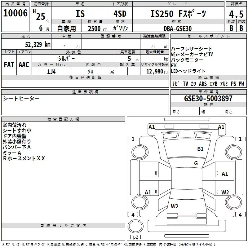 Lexus IS с аукциона Японии TAA Chubu лот № 10006