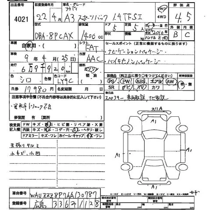 Audi A3 с аукциона Японии JU Hiroshima лот № 4021