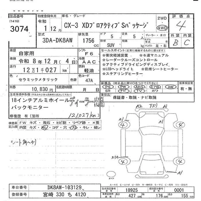 Mazda CX-3 с аукциона Японии JU Miyazaki лот № 3074