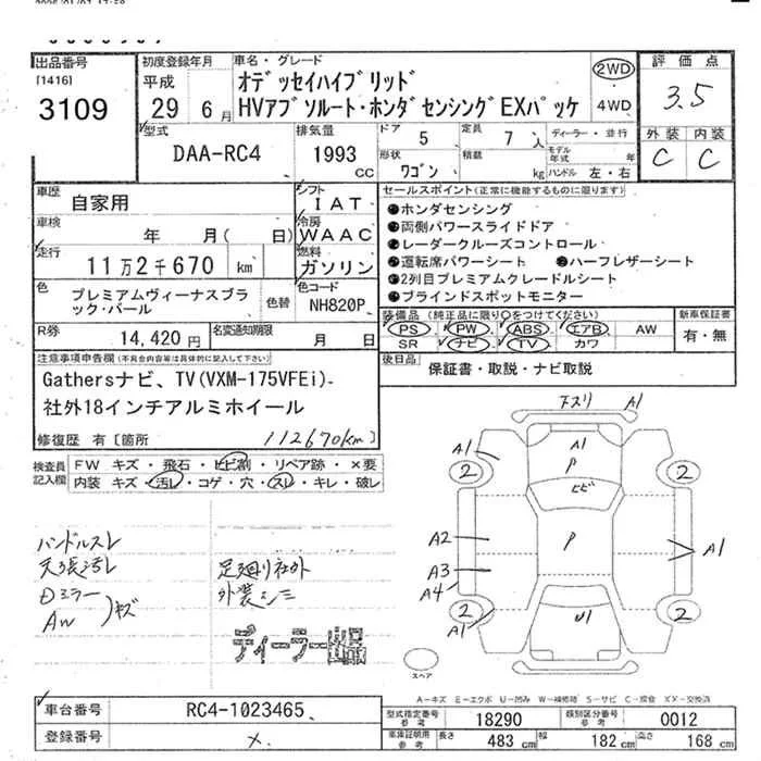 Honda ODYSSEY с аукциона Японии JU Miyazaki лот № 3109
