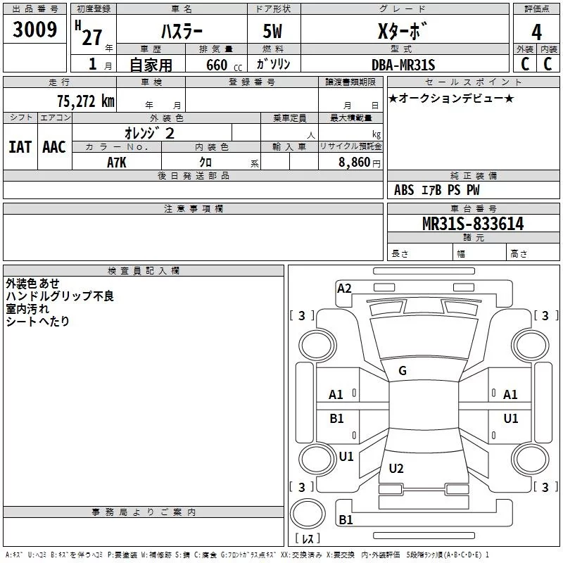 Suzuki HUSTLER с аукциона Японии TAA Chubu лот № 3009