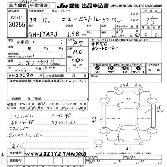 Volkswagen NEW BEETLE с аукциона Японии JU Aichi лот № 30255