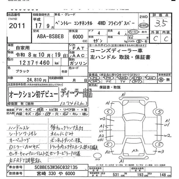 Bentley Continental с аукциона Японии JU Miyazaki лот № 2011
