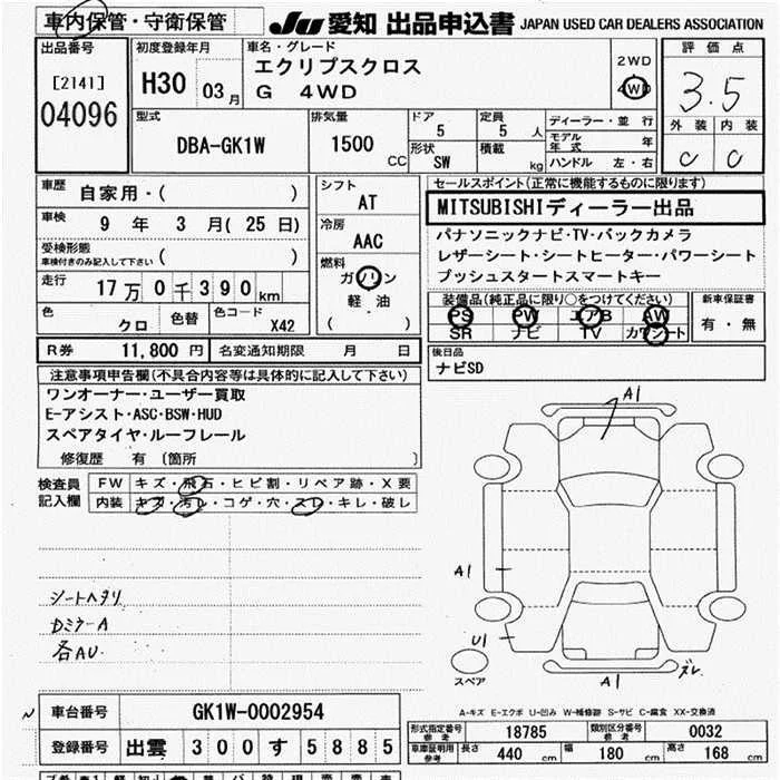 Mitsubishi ECLIPSE CROSS с аукциона Японии JU Aichi лот № 4096
