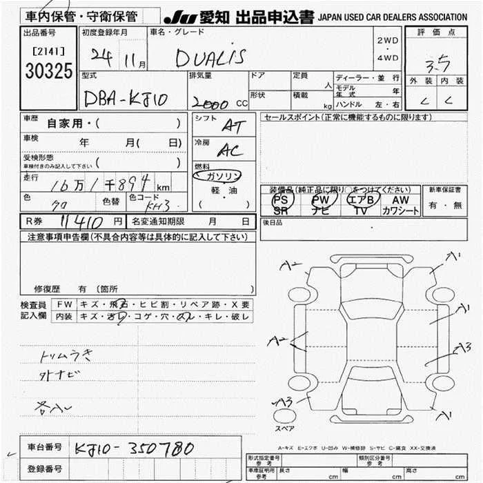 Nissan DUALIS с аукциона Японии JU Aichi лот № 30325
