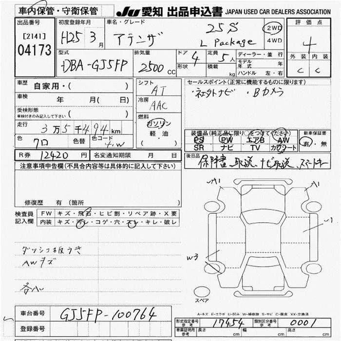 Mazda ATENZA SEDAN с аукциона Японии JU Aichi лот № 4173