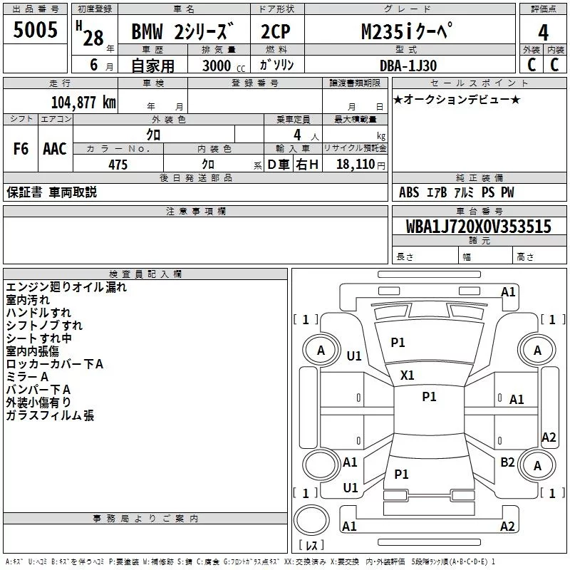 BMW 2-Series с аукциона Японии TAA Chubu лот № 5005