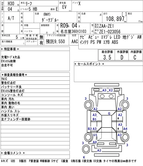 Nissan LEAF с аукциона Японии NAA Nagoya лот № 8019