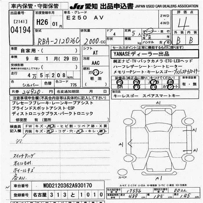 Mercedes-Benz E CLASS с аукциона Японии JU Aichi лот № 4194