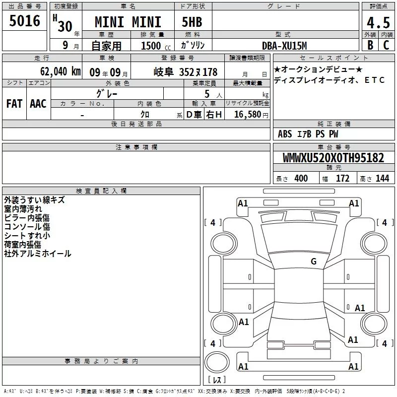 BMW MINI с аукциона Японии TAA Chubu лот № 5016