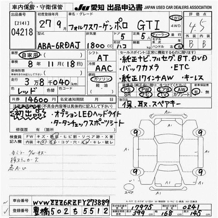 Volkswagen POLO с аукциона Японии JU Aichi лот № 4218