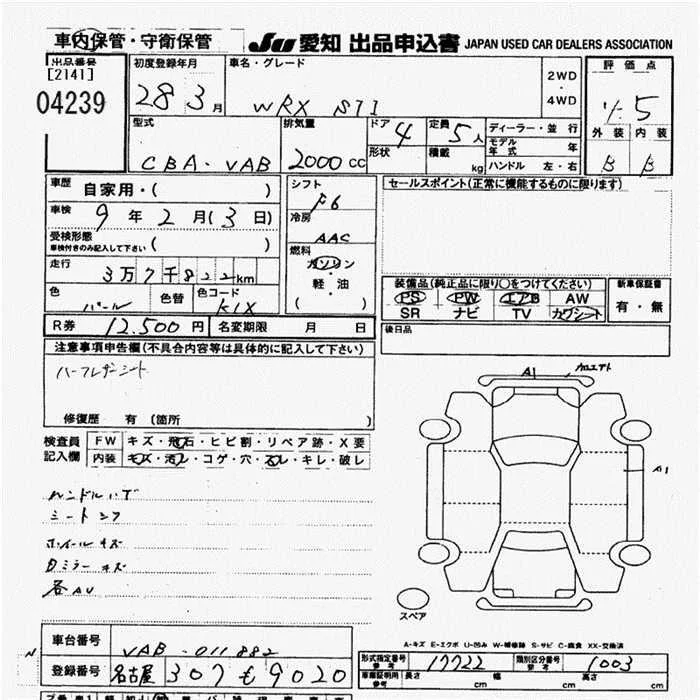 Subaru WRX с аукциона Японии JU Aichi лот № 4239