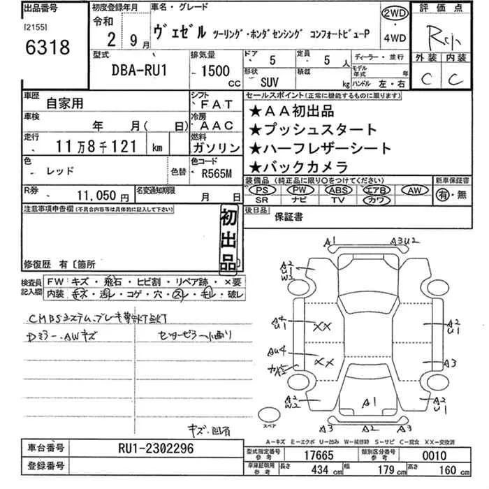 Honda VEZEL с аукциона Японии JU Kanagawa лот № 6318