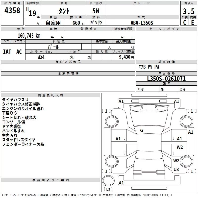 Daihatsu TANTO с аукциона Японии TAA Chubu лот № 4358