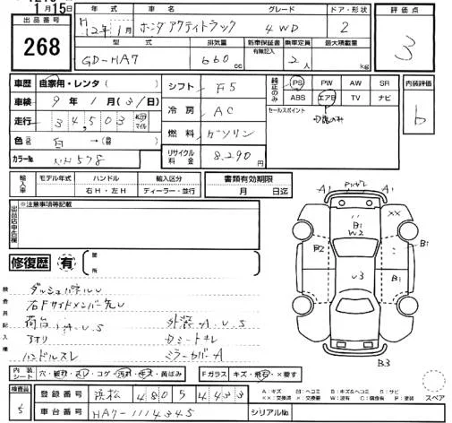 Honda ACTY TRUCK с аукциона Японии SUZUKI AA Hamamatsu лот № 268
