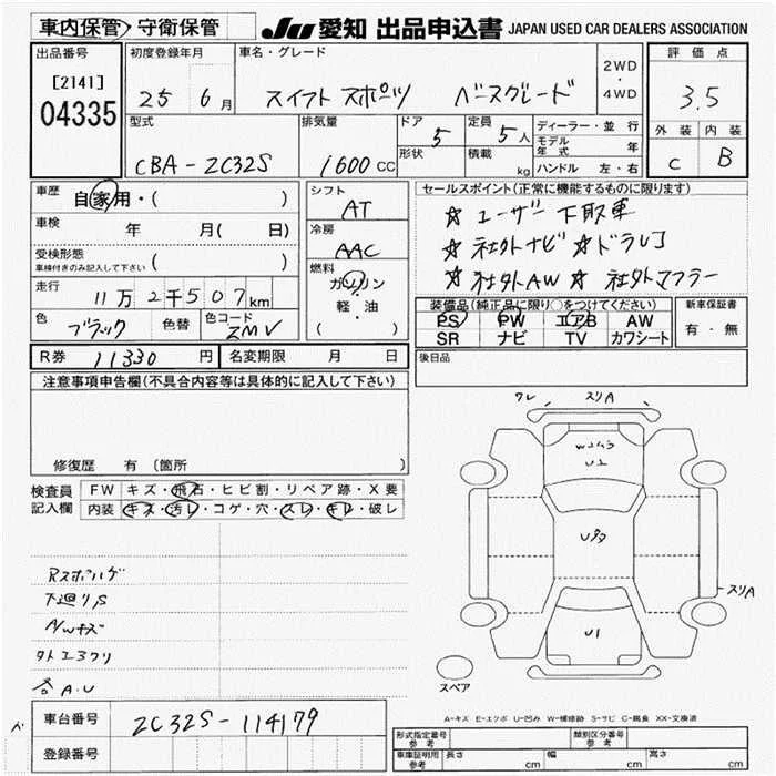 Suzuki SWIFT с аукциона Японии JU Aichi лот № 4335