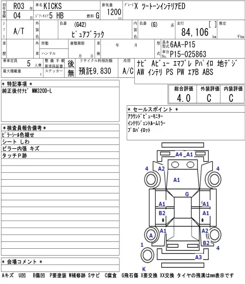 Nissan KICKS с аукциона Японии NAA Osaka лот № 43