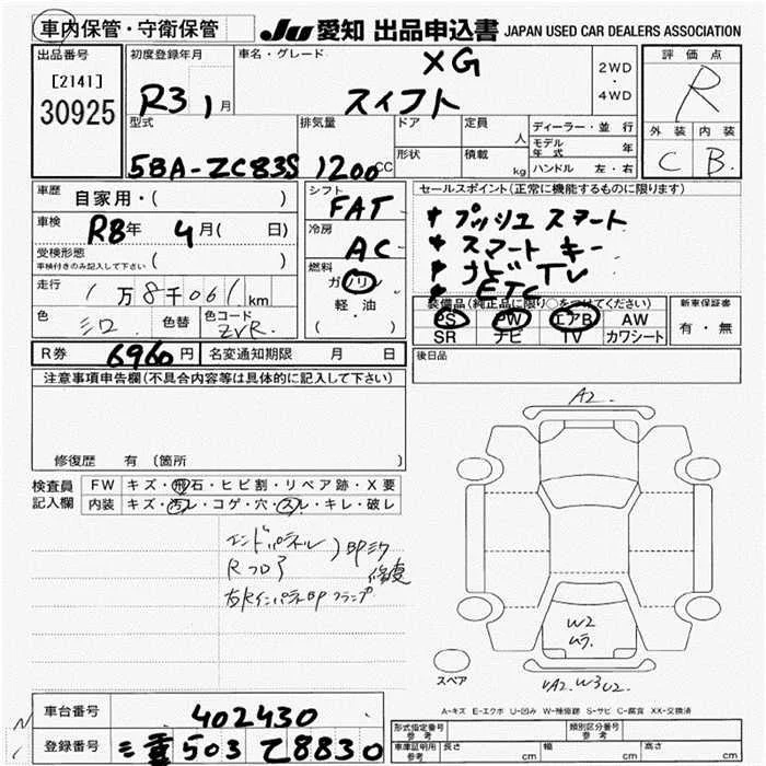 Suzuki SWIFT с аукциона Японии JU Aichi лот № 30925