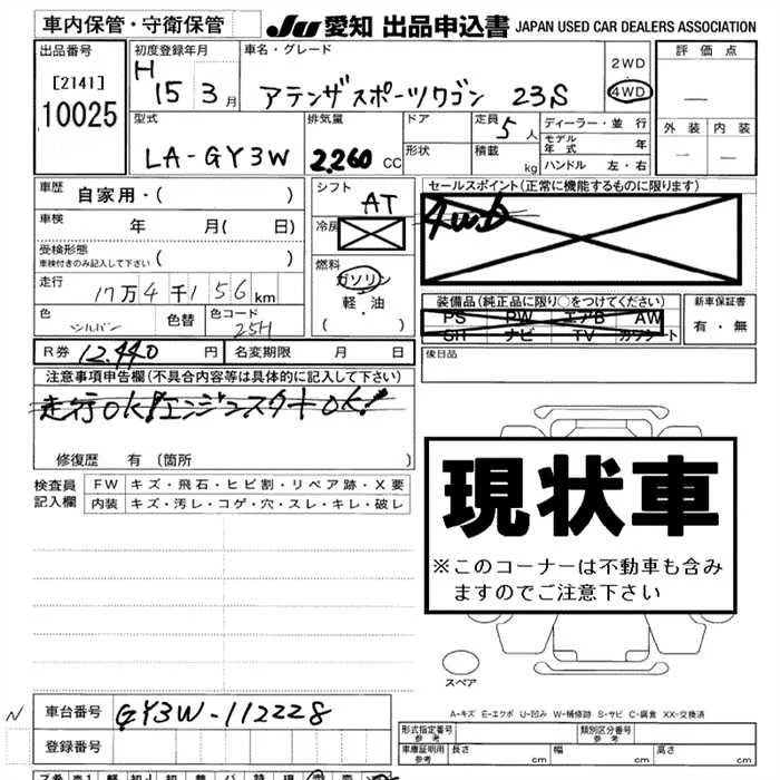 Mazda ATENZA WAGON с аукциона Японии JU Aichi лот № 10025