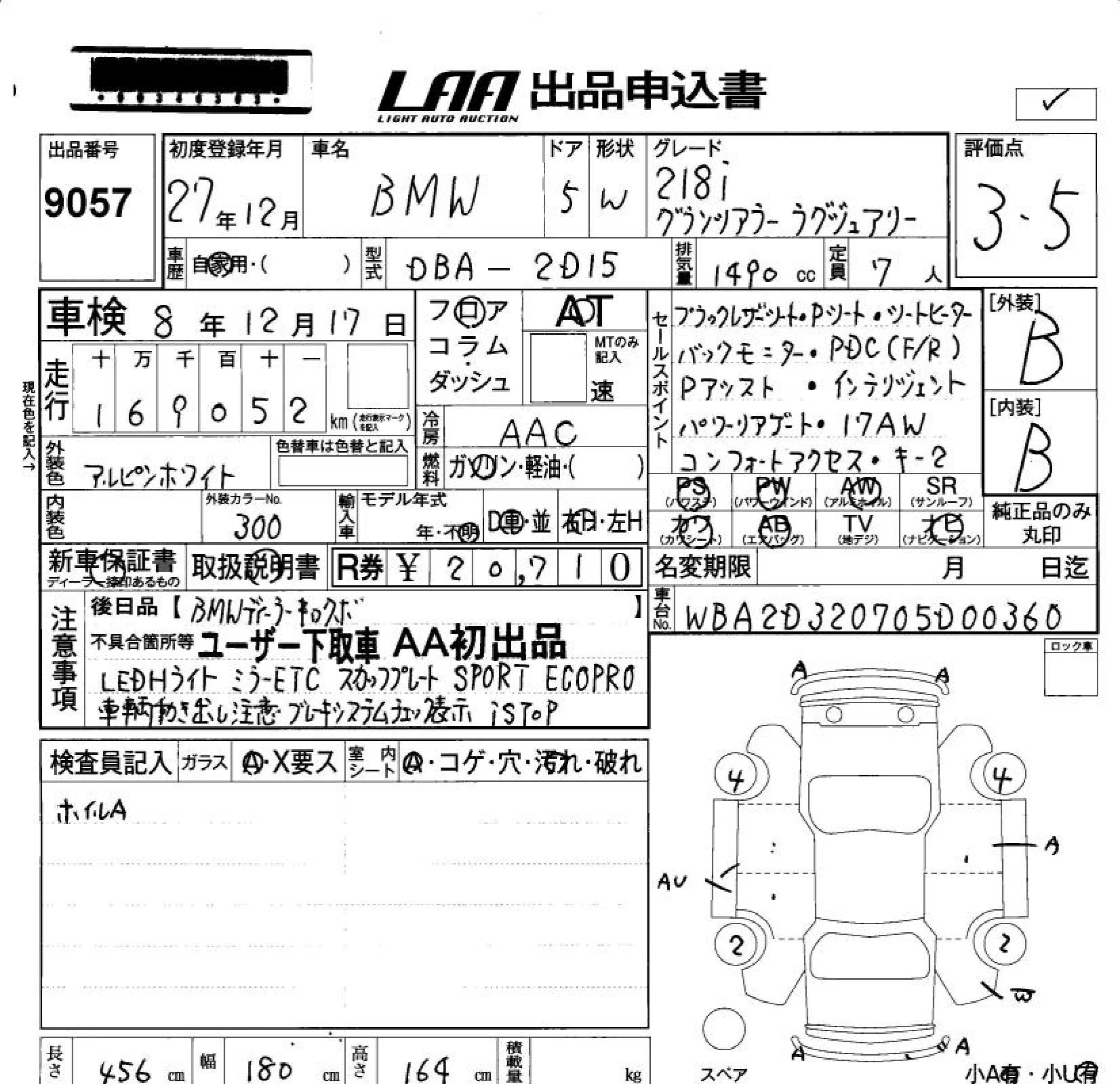 BMW 2-Series с аукциона Японии LAA Okayama лот № 9057