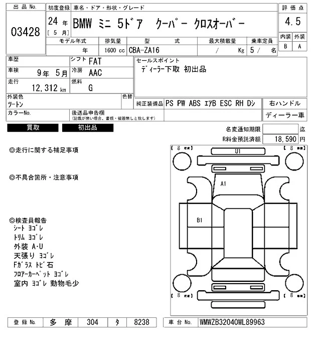 BMW MINI с аукциона Японии ARAI Bayside лот № 3428