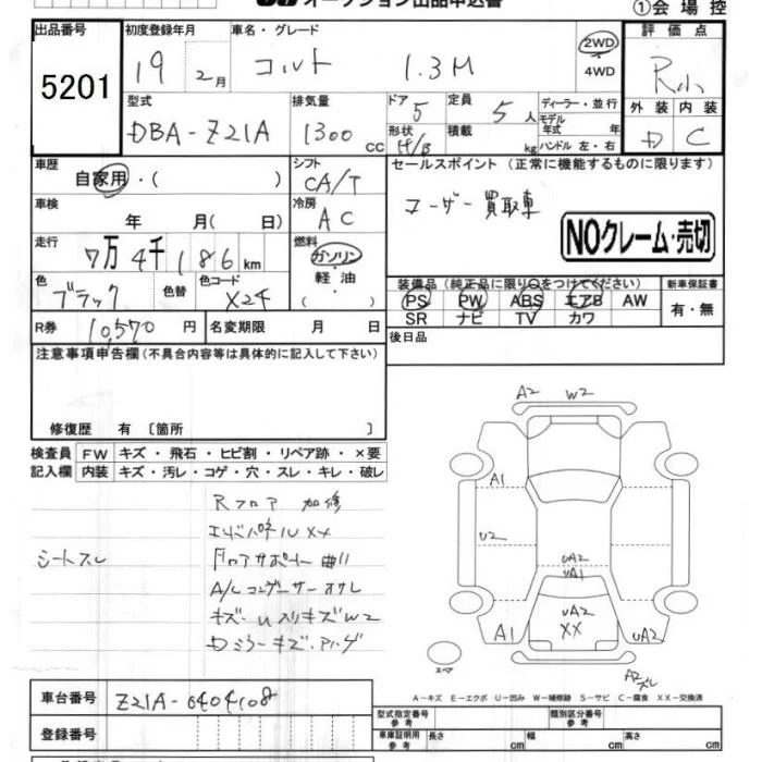 Mitsubishi COLT с аукциона Японии JU Chiba лот № 5201