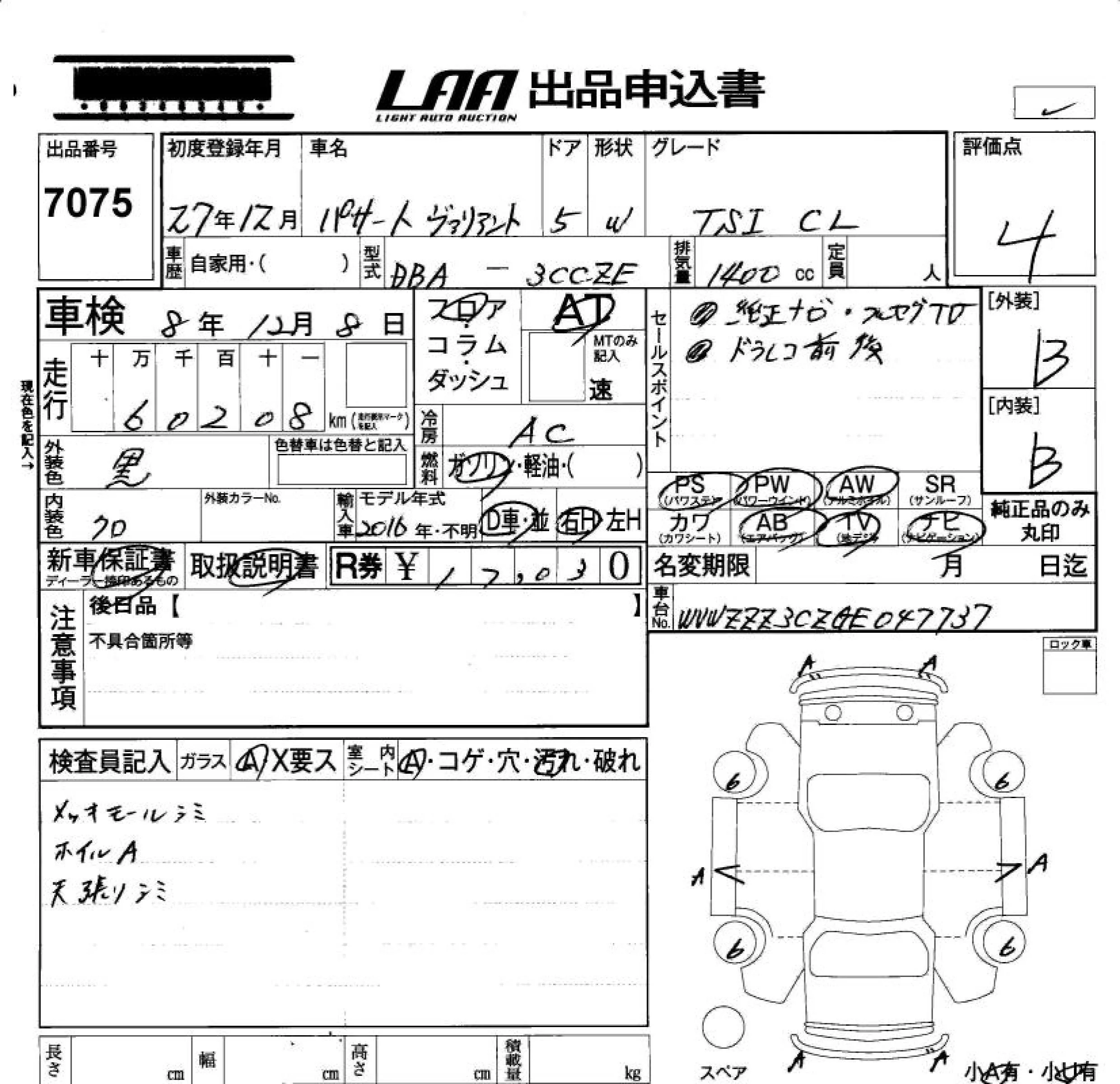 Volkswagen PASSAT VARIANT с аукциона Японии LAA Okayama лот № 7075